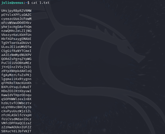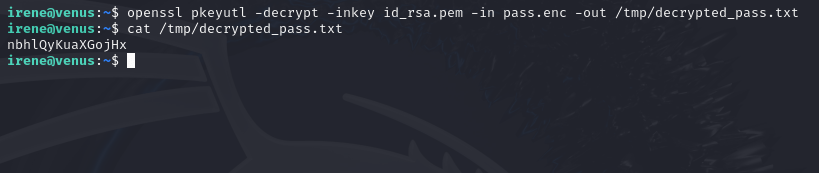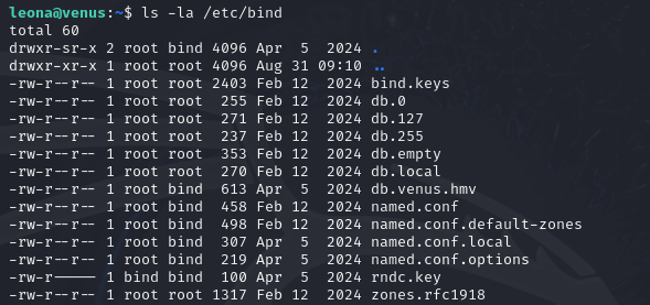 One of the DNS zone files here is “db.venus.hmv”. Using “cat” to examine the contents of it will lead us to the password.