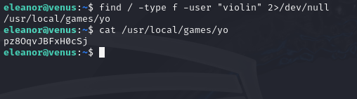 This challenge requires use of the “find” command again to search for a file belonging to the user “violin”.