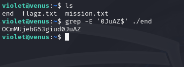 For this one, we’ll need to use the “grep” command again to create a regular expression to find a line that ends with “0JuAZ”. The following command will suffice: