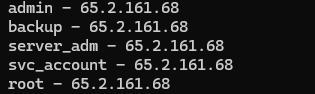 All accounts attempted were administrative-like accounts, and all attempts came from the same IP.